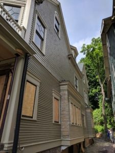 The restoration of the Gustav Stickley House in Syracuse, NY has just gotten one step closer to becoming a reality. Phase One of the restoration of the Gustav Stickley House – the historic exterior – is wrapping up and the Gustav Stickley House Foundation is throwing a public celebration. On Thursday, June 28th at 10:00 AM, the Foundation will have a party at the Gustav Stickley House at 438 Columbus Avenue. The home’s exterior now matches the design of Stickley’s original home in the early to mid-1900’s. Stickley, a leading Arts and Crafts movement designer and maker in the early 20th Century, owned the house from 1900 to 1911 and lived there again from 1919 until his death in 1942.