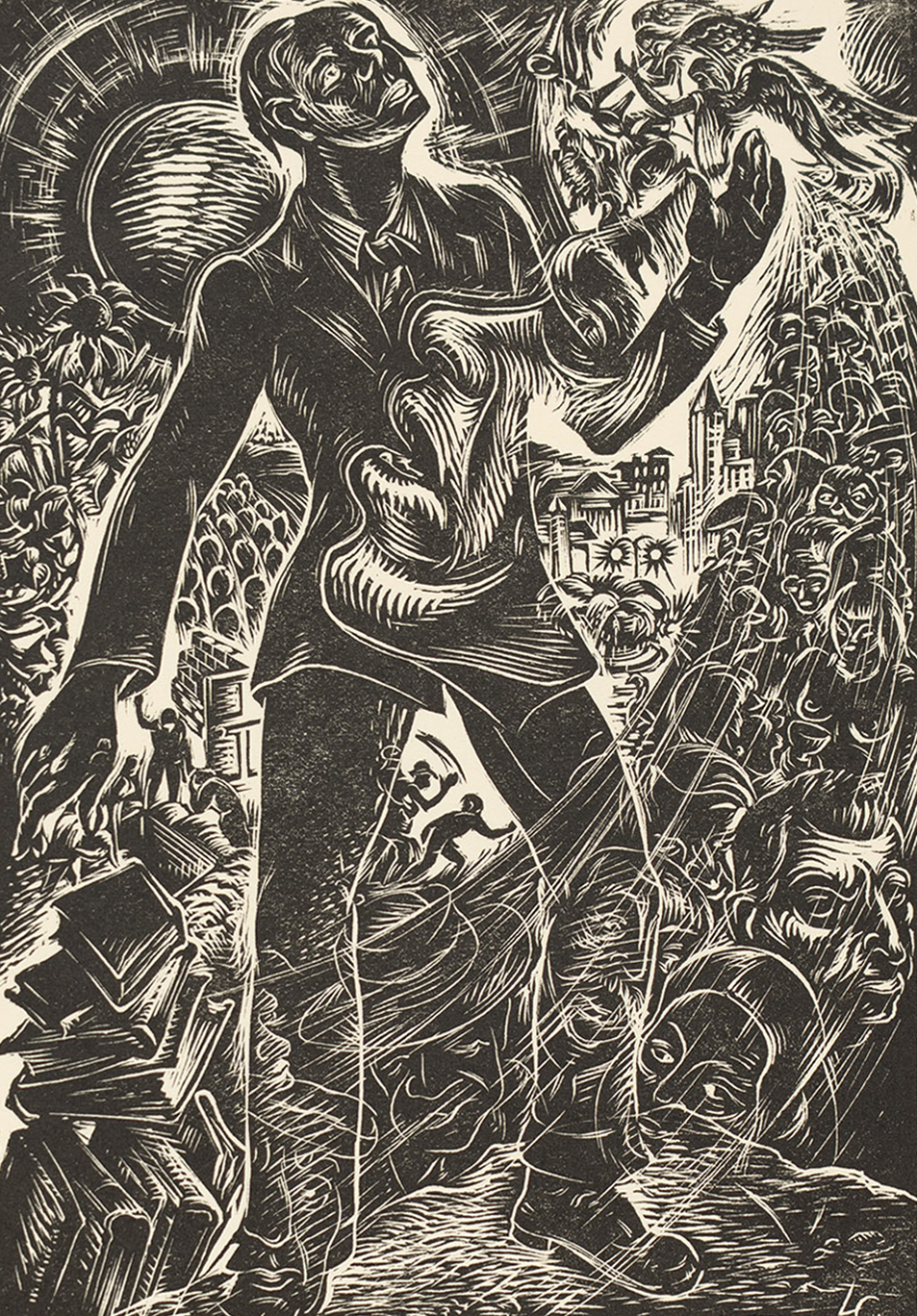 Letterio Calapai, “Untitled (On the brink of the dark he stood)” from the “Look Homeward, Angel” portfolio (detail), 1948, wood engraving and copper etching printed in relief on paper, edition 70/200, 13 × 18 inches. Museum purchase. Courtesy Asheville Art Museum.